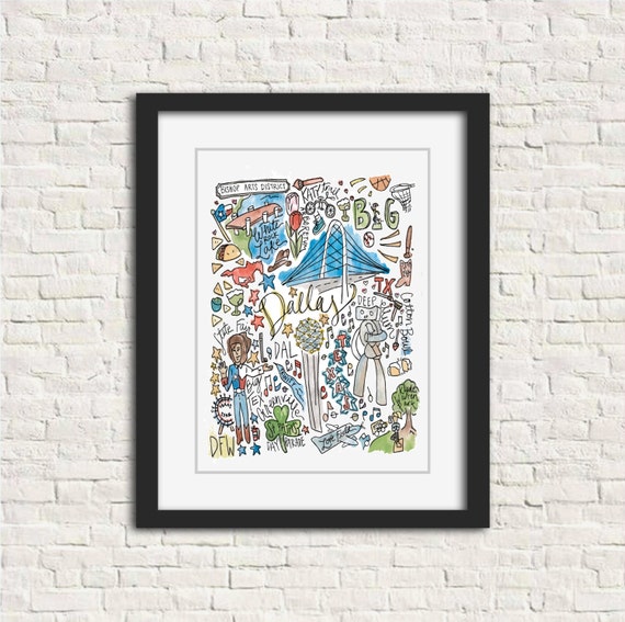Dallas Texas Handlettered Watercolor Wall Art City Etsy